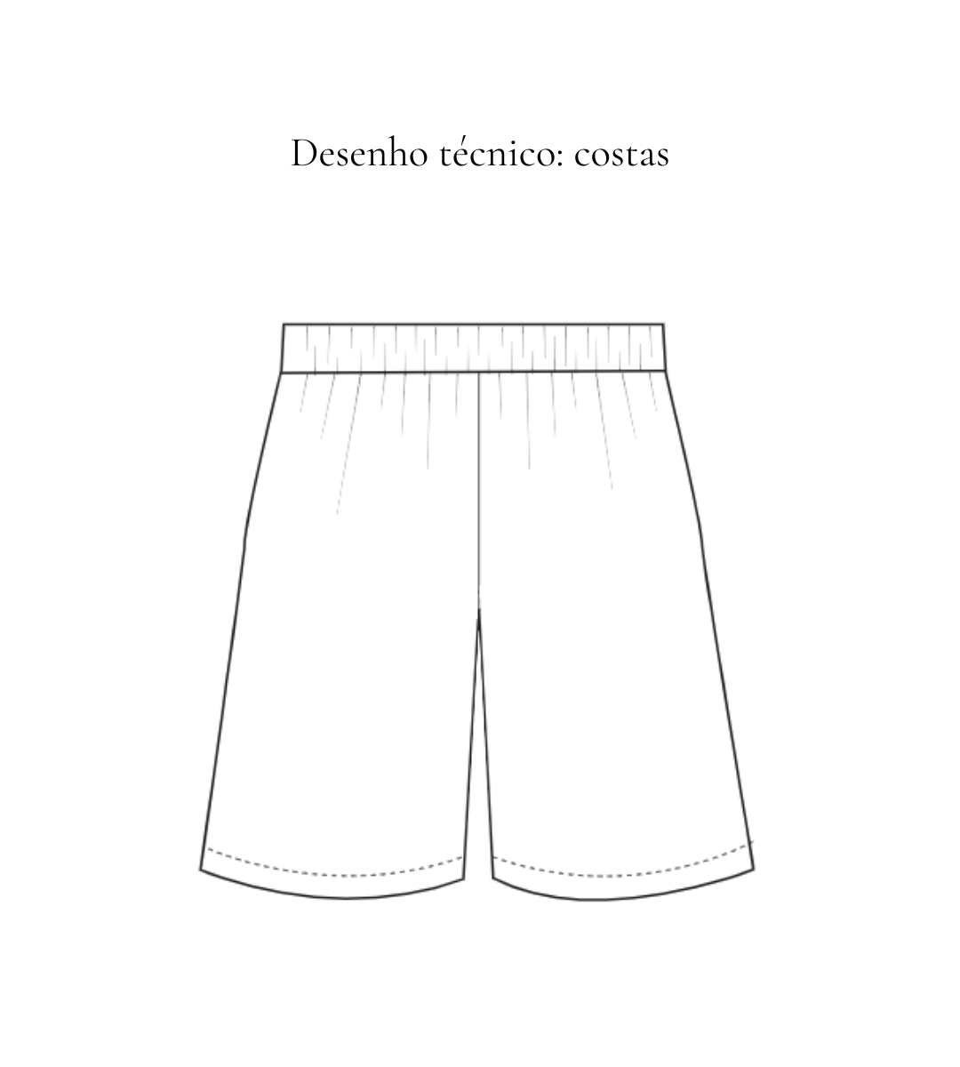 SOBRE A PEÇA: Sobre a peça: Bermuda com bolso faca frontal, cós com elástico e cordão de amarrar. Sem bolso traseiro. Acabamento na lateral em costura inglesa.   GRADE: 36 – 38 – 40 – 42 – 44