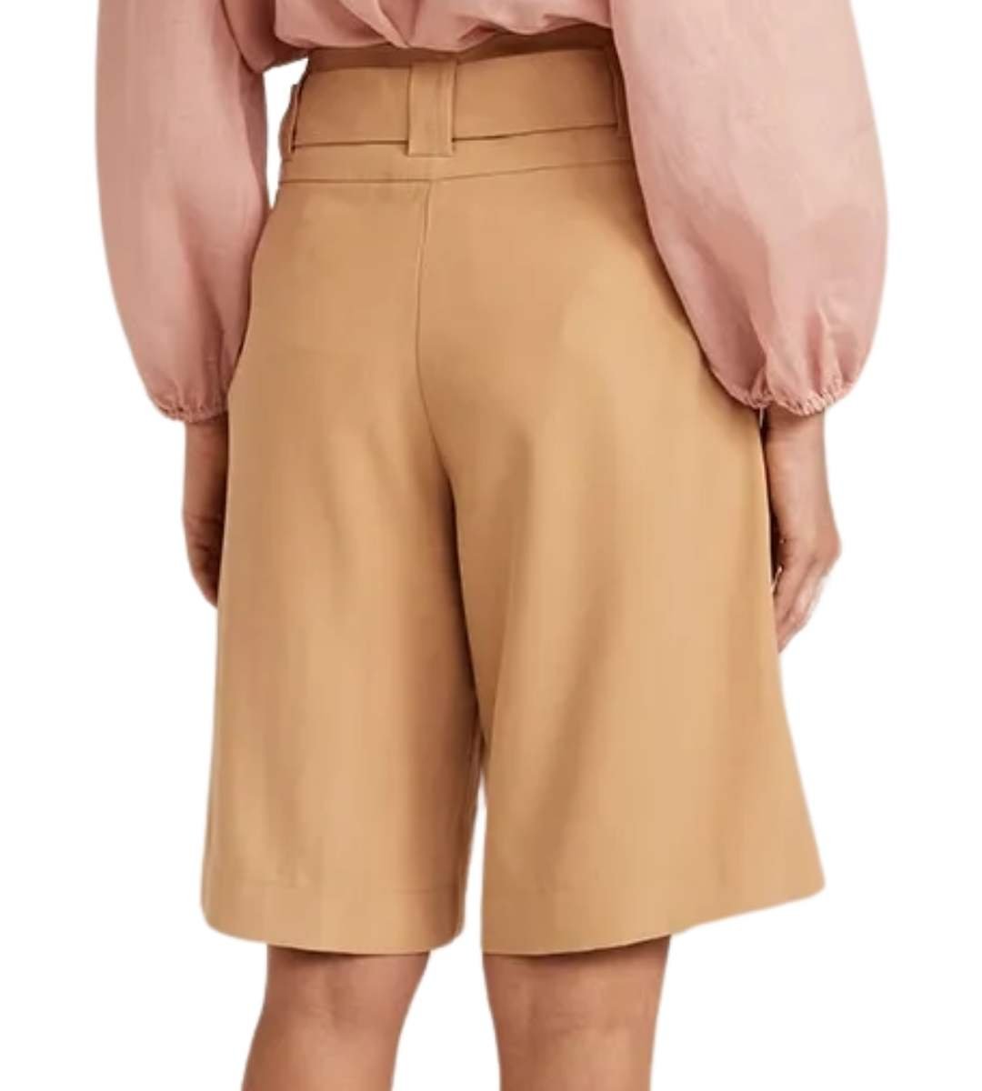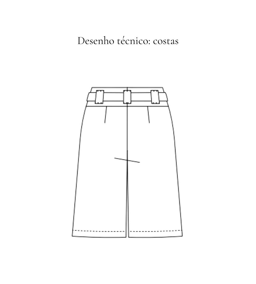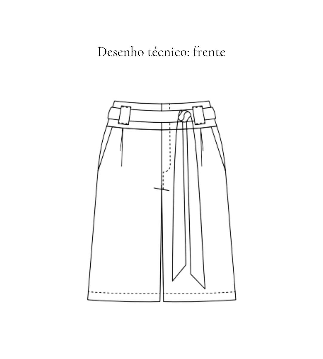 Bermuda sem bolso traseiro, apenas frontal. Acompanha faixa do mesmo tecido.