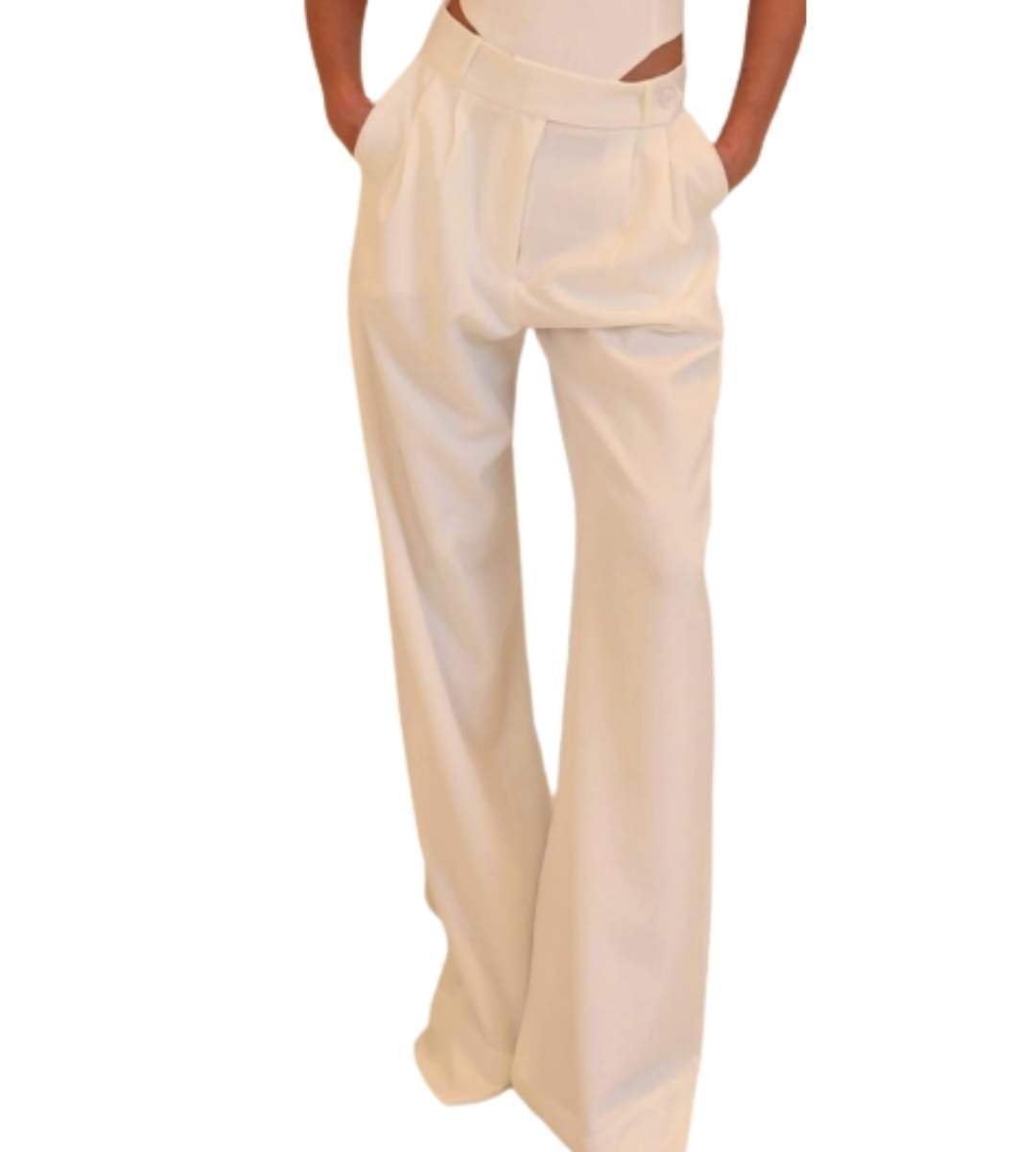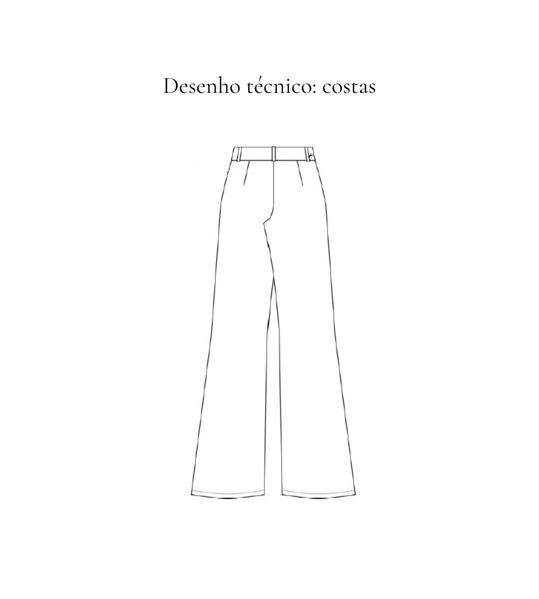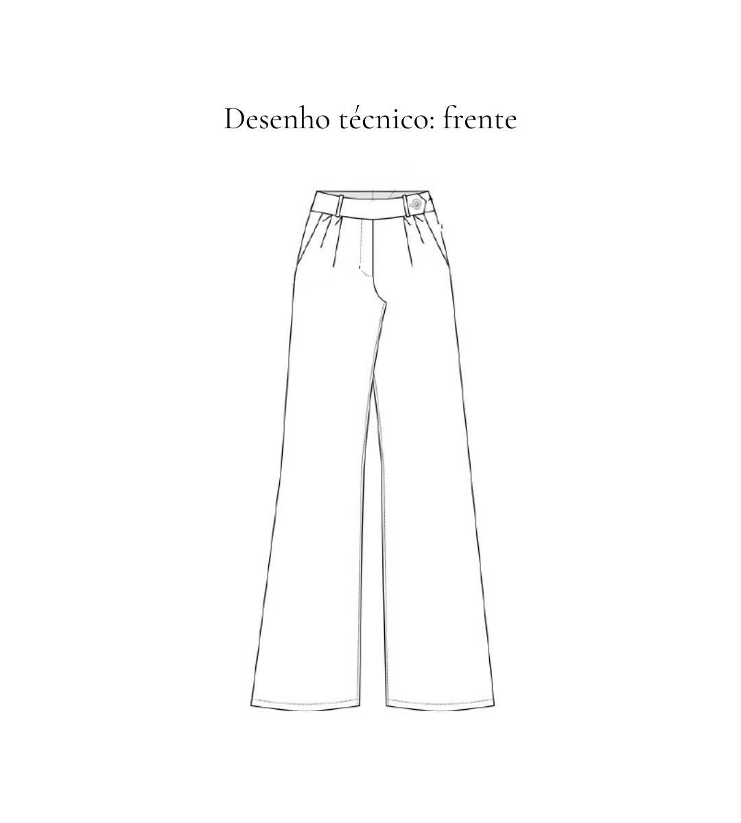 SOBRE A PEÇA: Calça wide lag com fechamento no cós lateral (idem foto). Cós entretelado. Bolso frontal de faca. Sem bolsos traseiros. Um botão forrado.