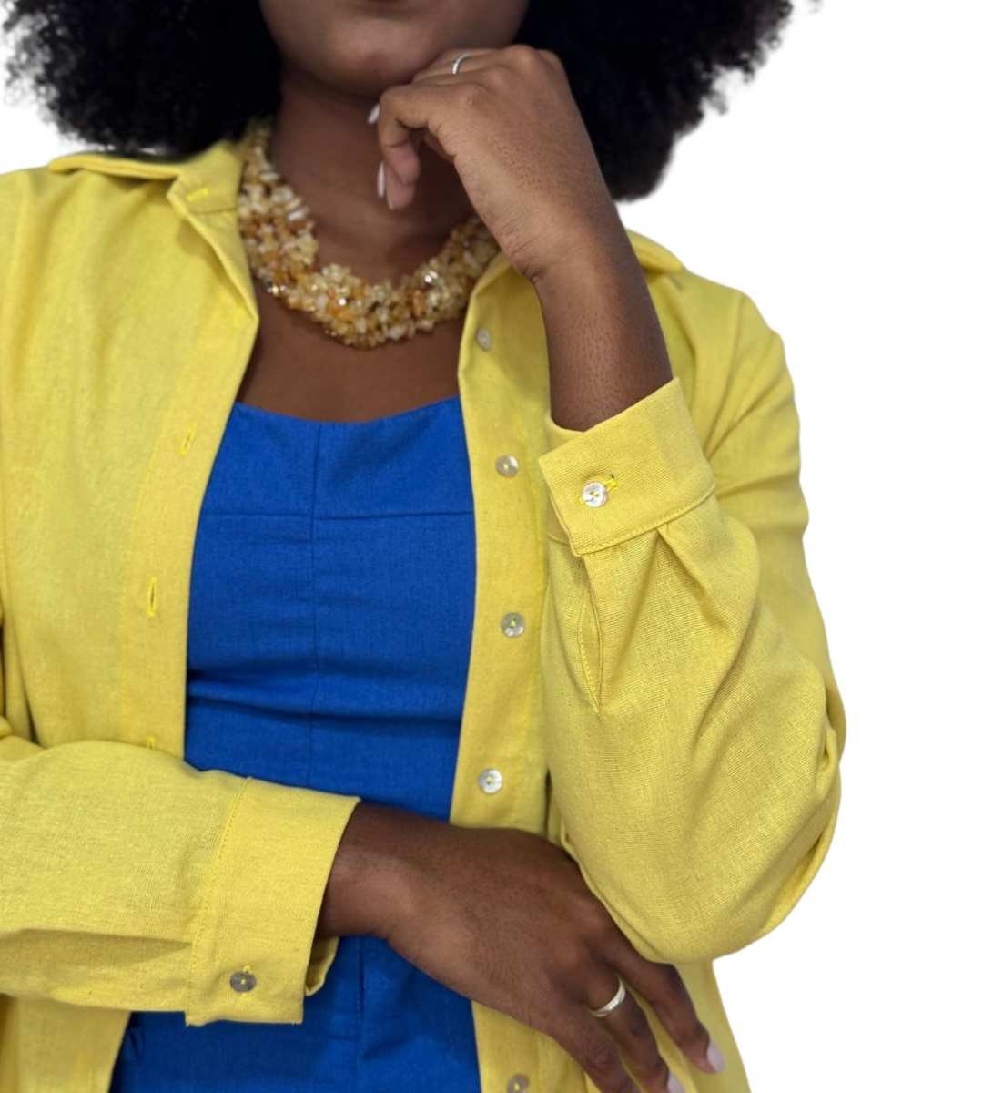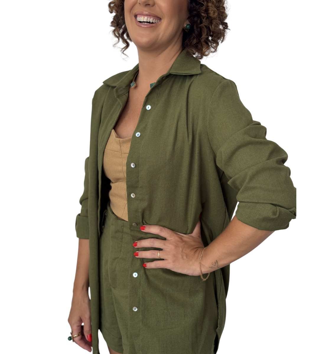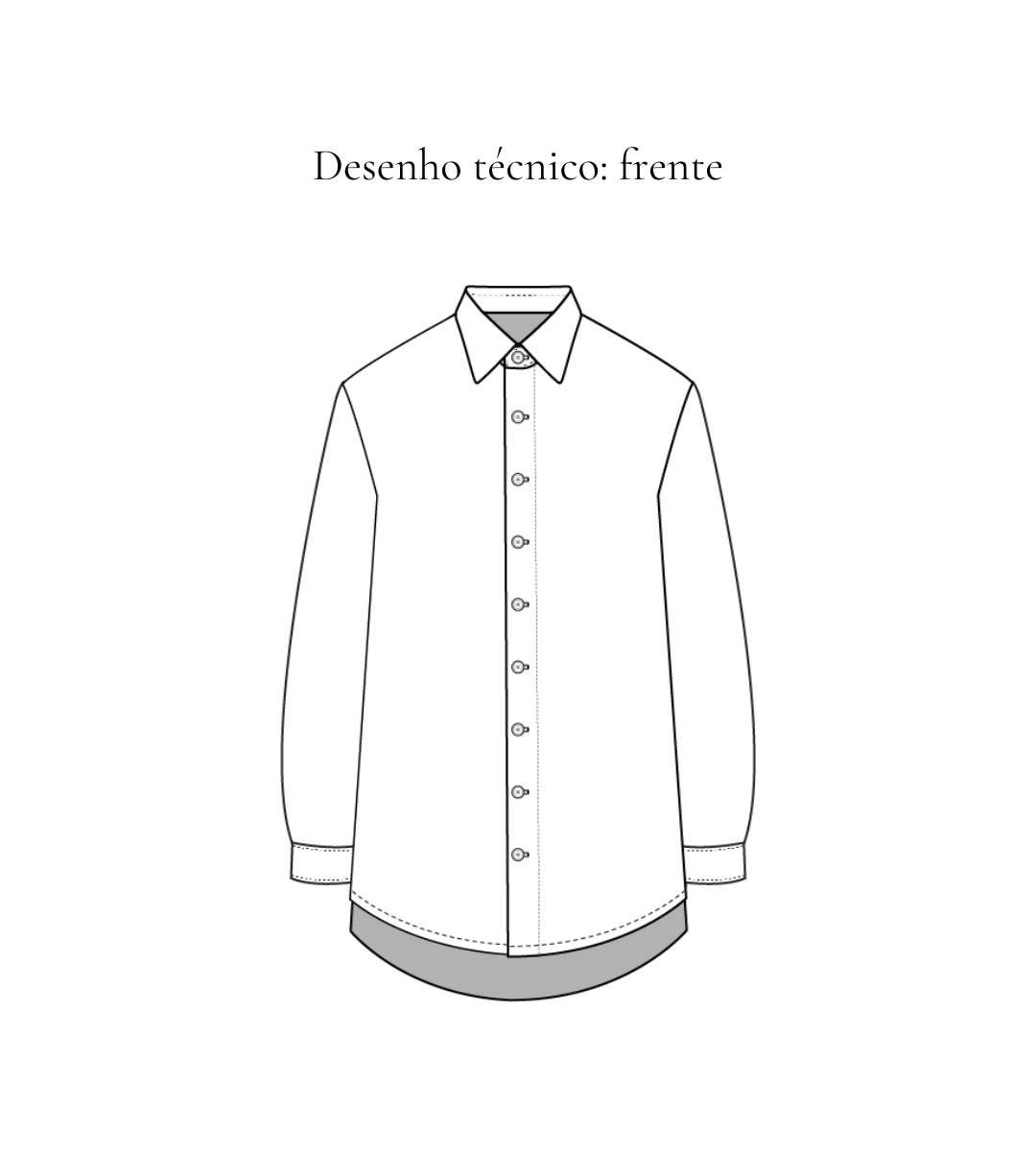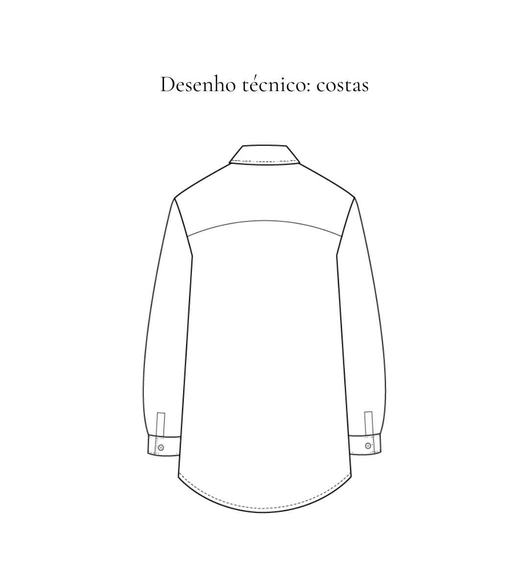 SOBRE A PEÇA: Camisa de manga longa com ou sem bolso externo sobreposto, modelagem ampla, gola e pé de gola, fechamento frontal em botões caseados, prega no centro das costas.