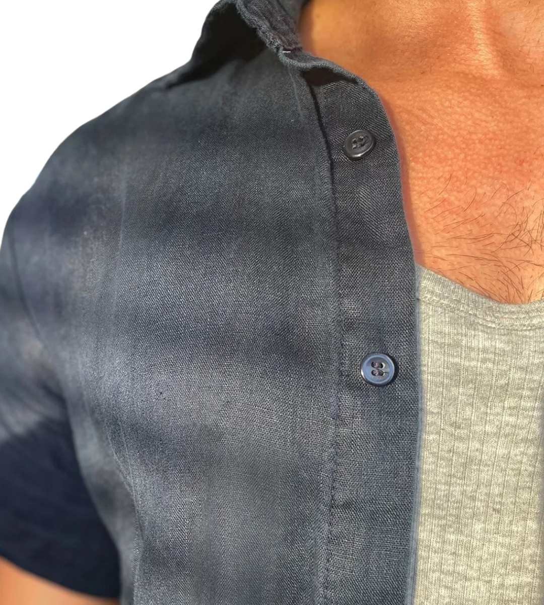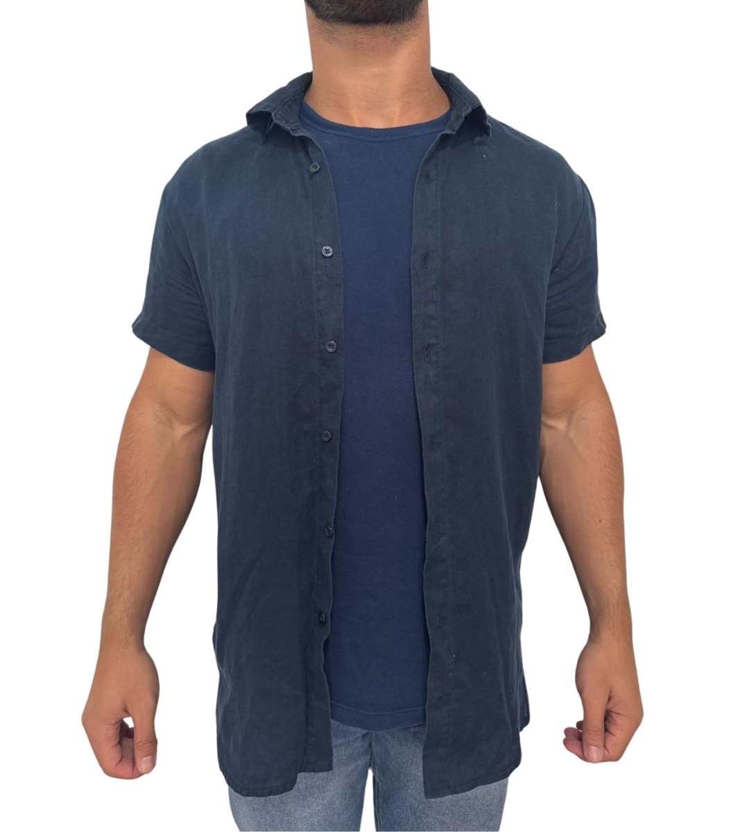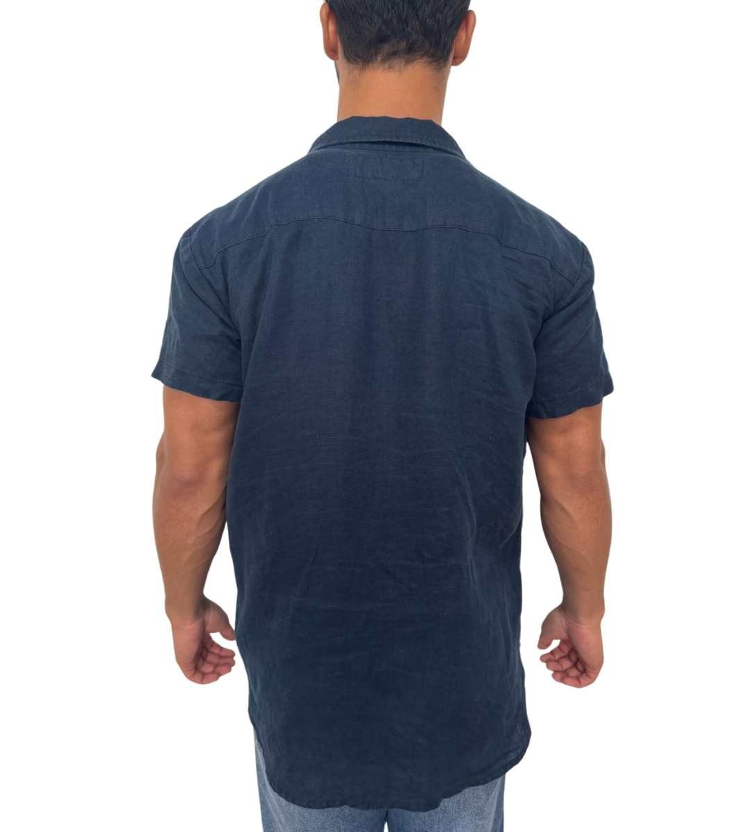 Camisa de manga curta slim, sem bolso sobreposto e vista com fechamento frontal em botões caseados. Acabamento na lateral em costura inglesa.