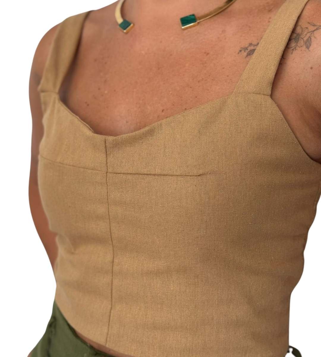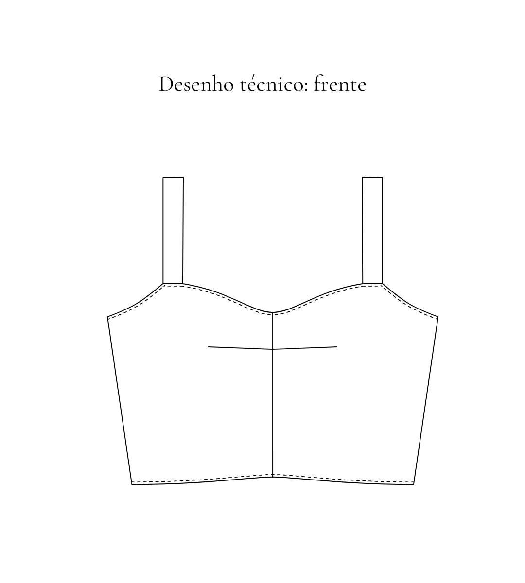 SOBRE A PEÇA: Cropped duplo, altura até a cintura, com zíper lateral invisível e lastex atrás.   GRADE: 36 – 38 – 40 – 42 – 44