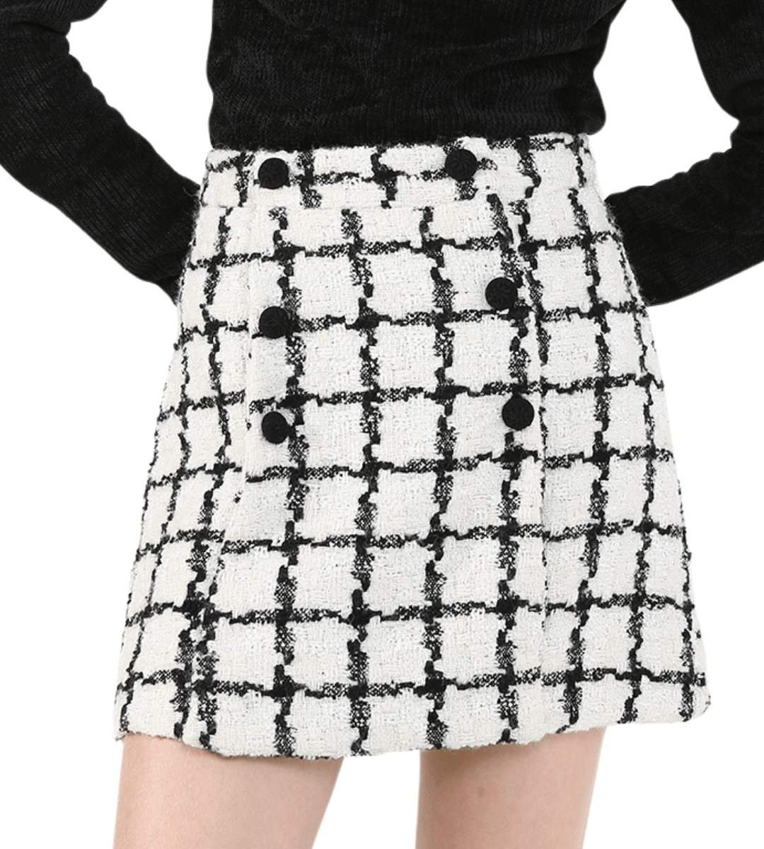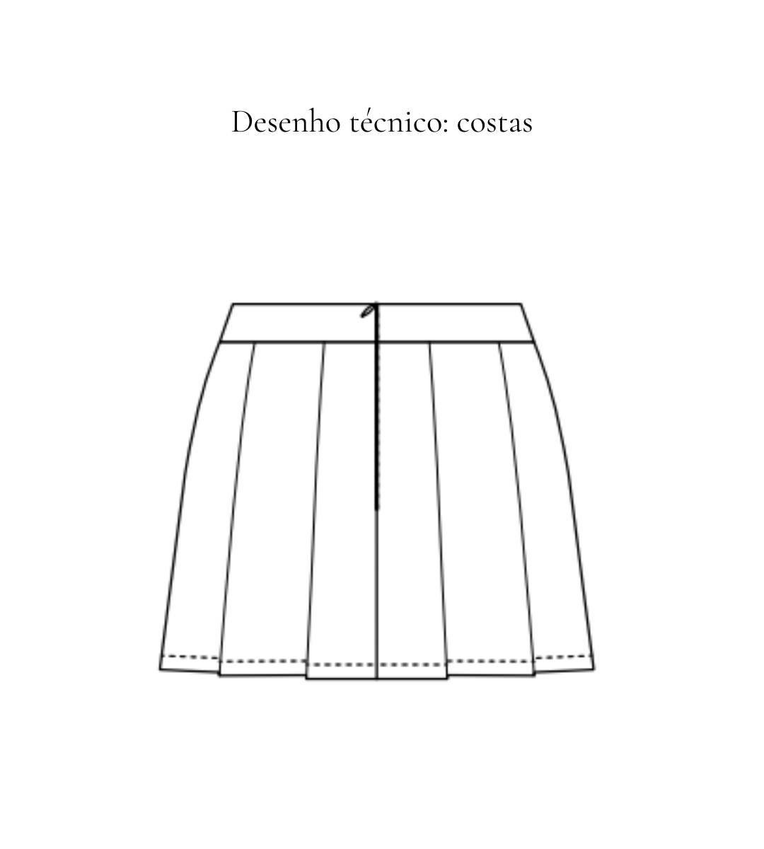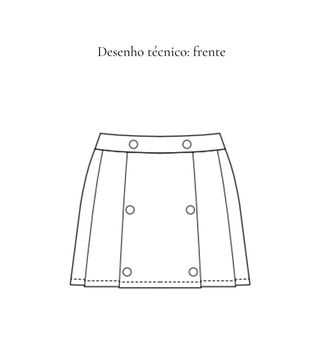 SOBRE A PEÇA: Minissaia, forrada, prega macho frontal, zíper invisível traseiro. Seis botões falsos frontais.